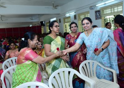 Women Management Committee Members graced the occasion. Mr. Purushottam Reddy Jr.college supervisor and Dr. Sachin Tambare secondary P.T teacher hosted the programme with enormous zeal. They along with other male staff shouldered the programme and made it memorable. The programme was concluded with scrumptious lunch sponsored by Management.