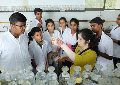 The Chemistry laboratory provides the necessary infrastructure needed for various experiments. The lab is equipped with reflux chambers, titration apparatus, fume-hood, melting point devices, chromatography cabinets and temperature controlled water-baths for use in experiments. The room also has exhausts built in to allow good ventilation and a healthy atmosphere.
