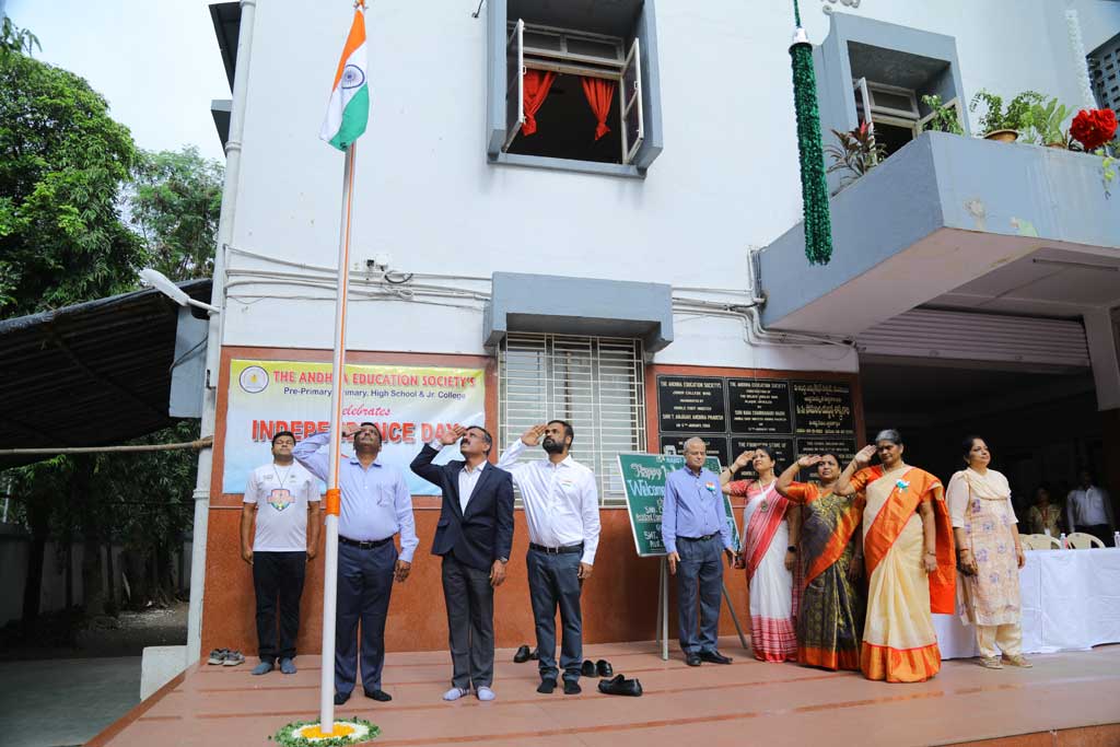 The Independence Day program at AES on August 15, 2023, commenced at 9:00 AM. Shri Chakrapani A.R, Assistant Commissioner, F/North Ward, Mumbai, graced the occasion as the Chief Guest. Smt. Vijaya Ghamare, from the Secondary Section, attended as the Guest of Honor. The event was attended by dignitaries including Shri Vutha Mohan, Shri Rammohan, Shri A S R Krishna Prasad, Smt Harileela, Headmistress, Heads of Various Sections, staff, parents and students. The program featured patriotic speeches, songs, and a portrayal of the life of soldiers by students. The Chief Guest, an ex-student of the school and topper of SSC 1985, delivered a motivational speech, reminiscing about his teachers and experiences. Smt. Boddupally Subbalakshmi, ex-student from the 1961 SSLC batch, freedom fighters family also graced the event, showcasing her love for the institution through dance and song.