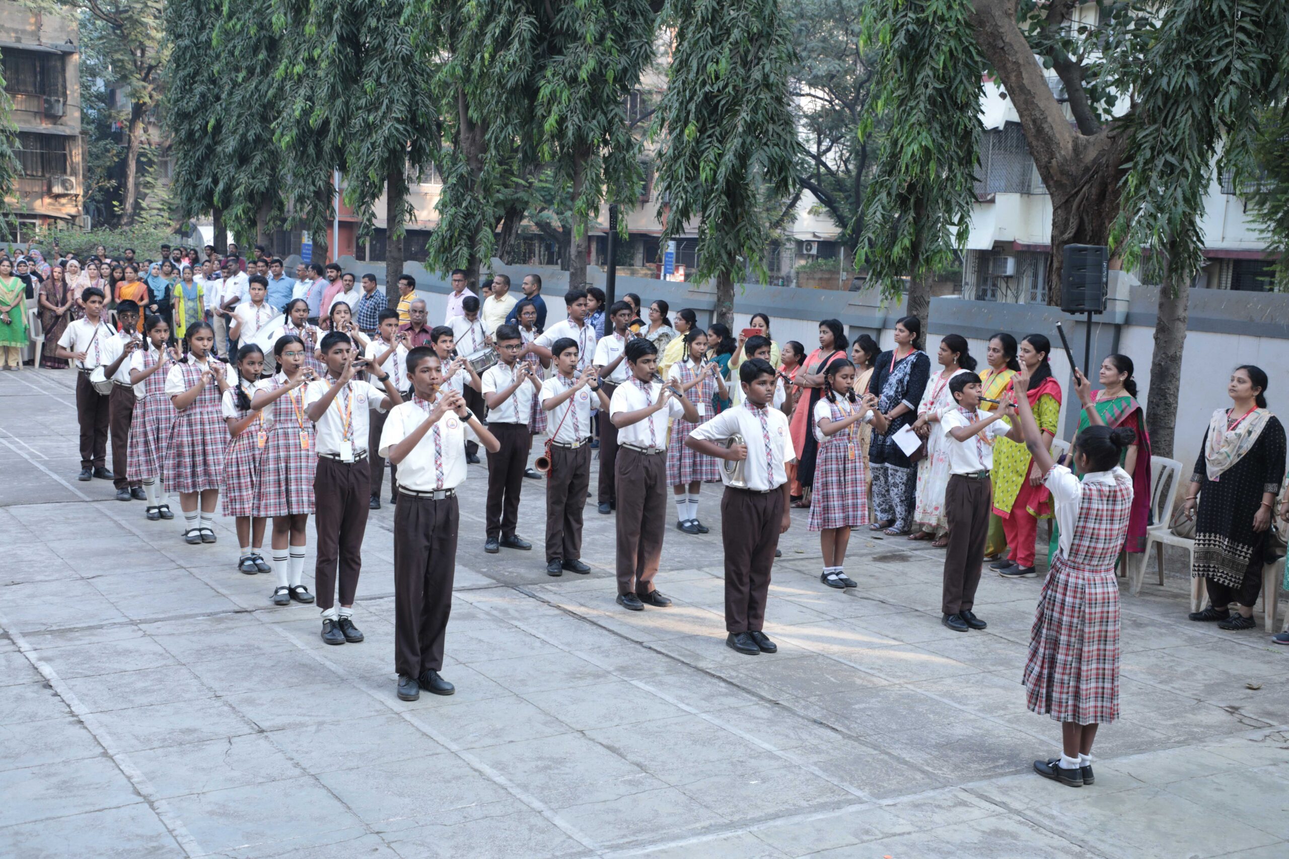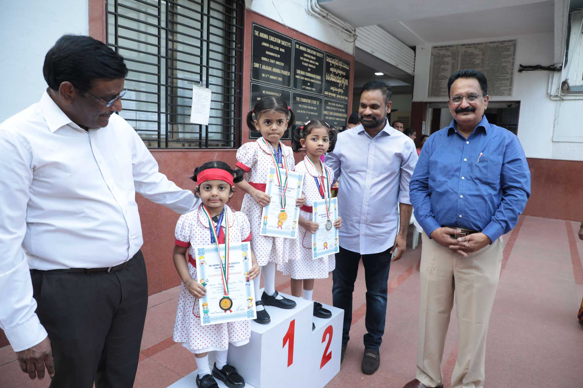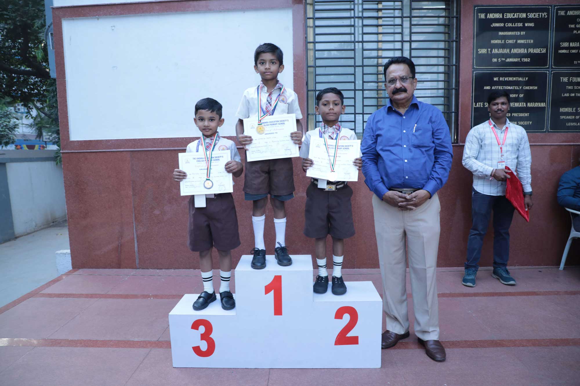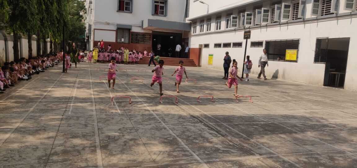 As the students missed the ground and sports events for last 2 years, their level of energy and enthusiasm were on peaks. Athletics events were conducted at the police parade ground, Naigaon. Medals and certificates were awarded immediately after each event on the ground by. Staff Sports were conducted on 3rd December. All students and staff enjoyed to participate in different sports events. Medals for preprimary and primary students and championship of team events and individual for secondary and junior college were awarded on 3rd December in school premises. The Andhra Education Society’s President Sri. B. Rammohan, General Secretary Sri. KSR Krishna Prasad accompanied the chief guest Dr. G. V. Pargaonkar Ex principal of B.P.Ed. College, Wadala and graced the function.
